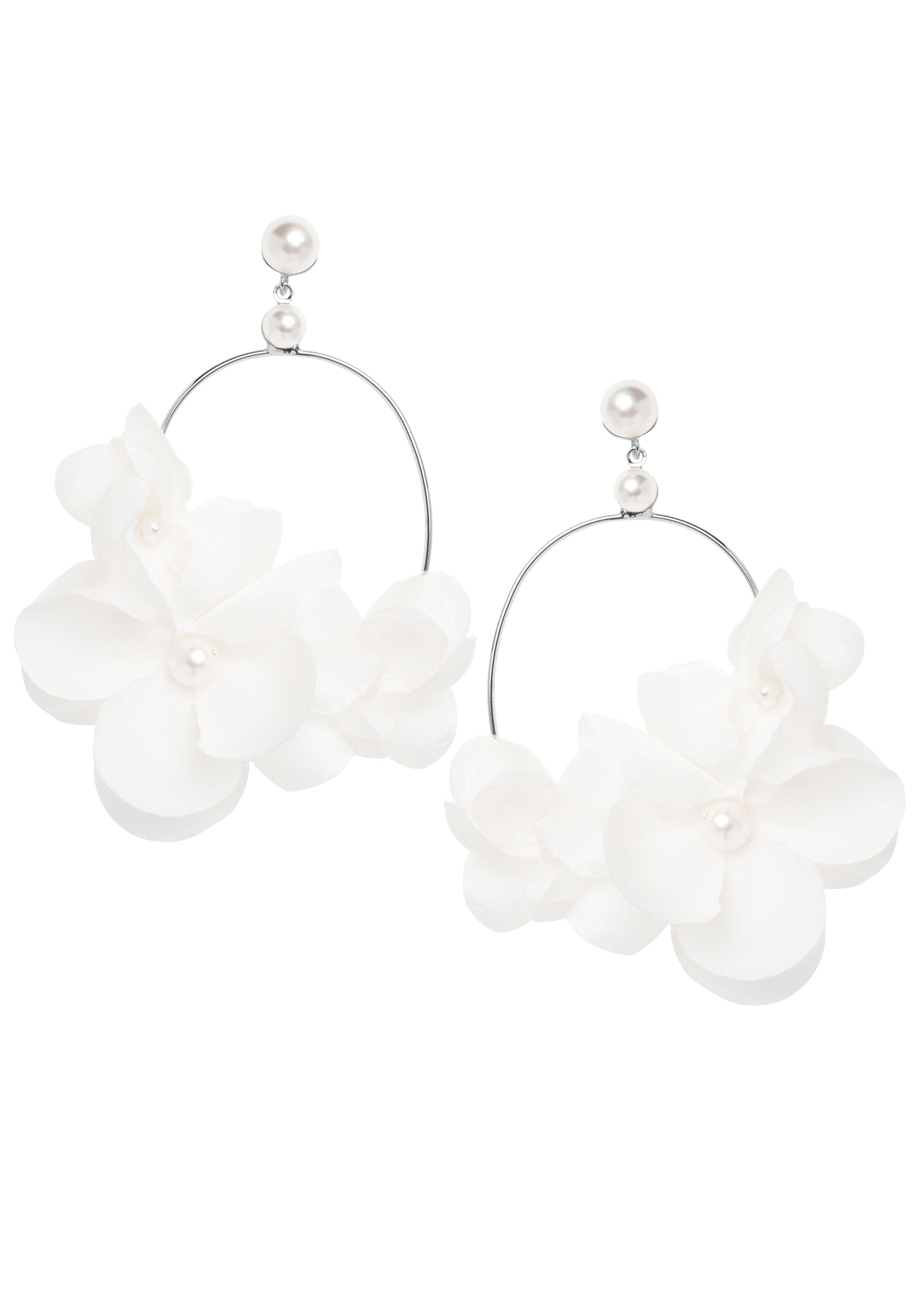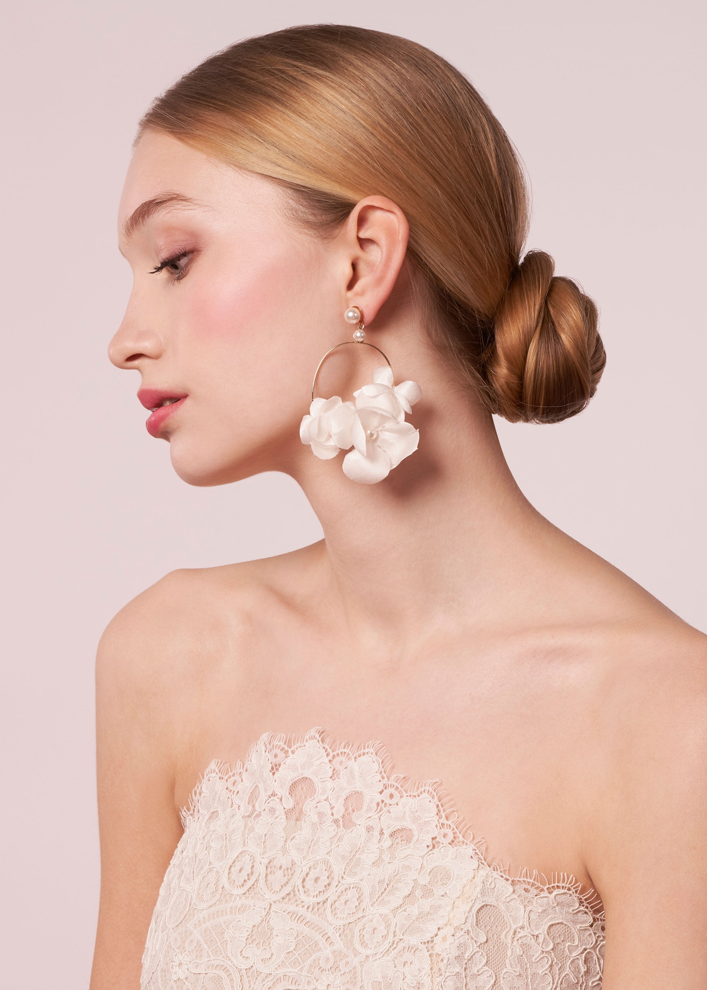 A fluttery floral hoop to take your breath away! Sculptural silk Charmuse flowers which create dimension without weight.