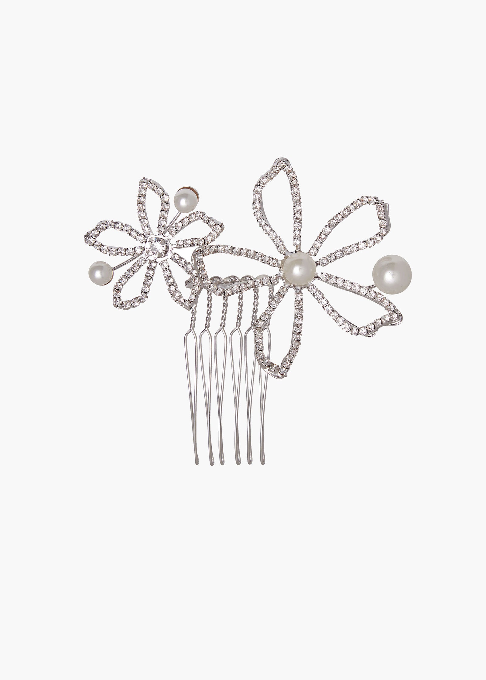 Our 'Pavet Pearl Mini Comb' is light on weight and big on impact. It's the perfect accessory to glow up your wedding look. A true statement made from crystal accented flowers and finished with the luster of pearls.